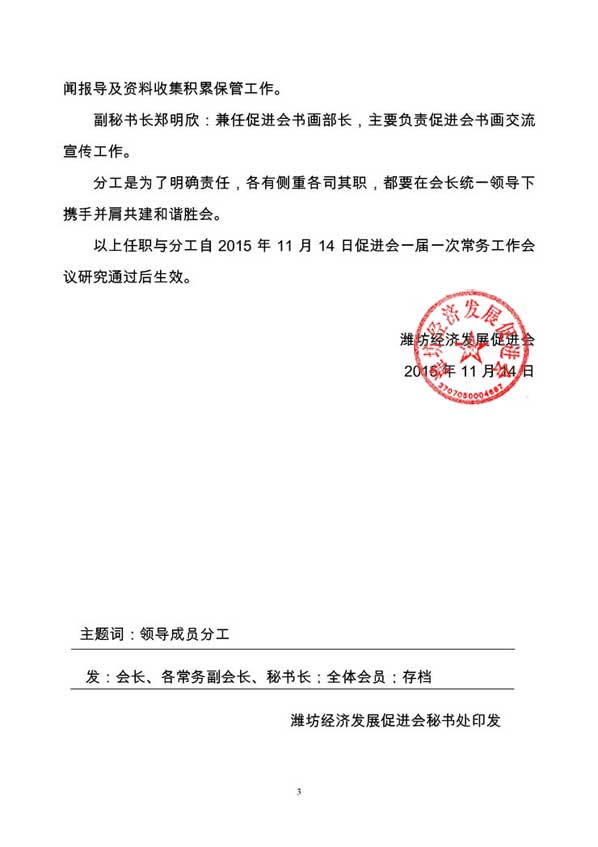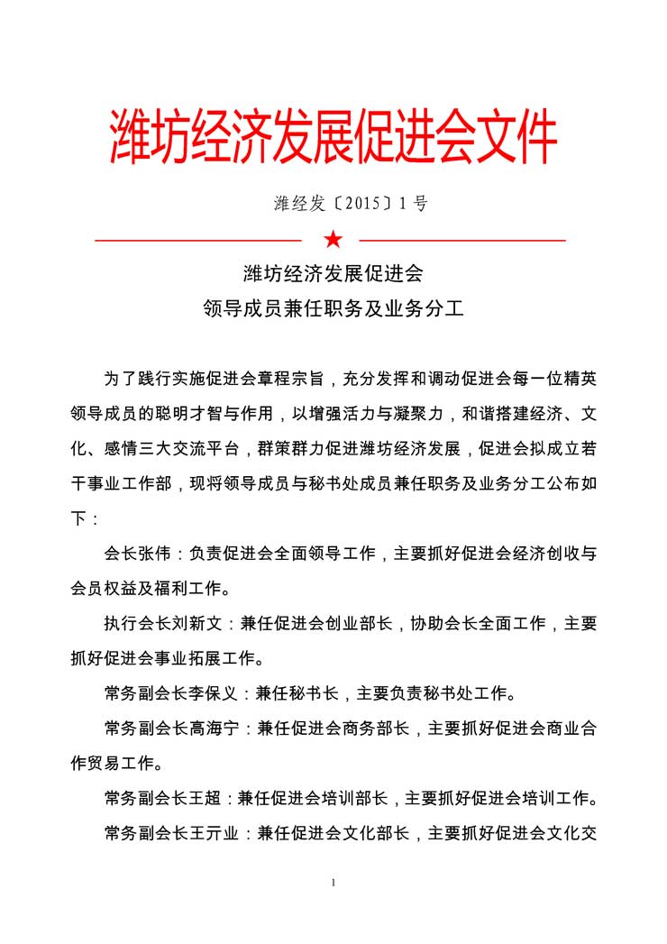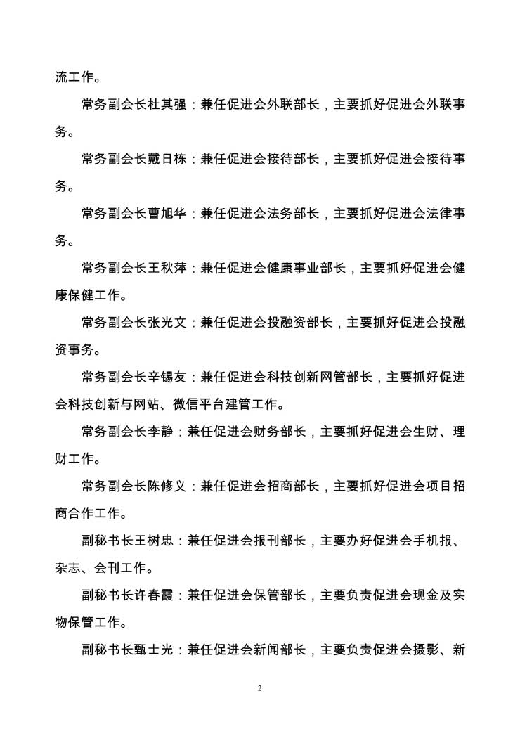 潍坊经济发展促进会领导成员兼任职务及业务分工