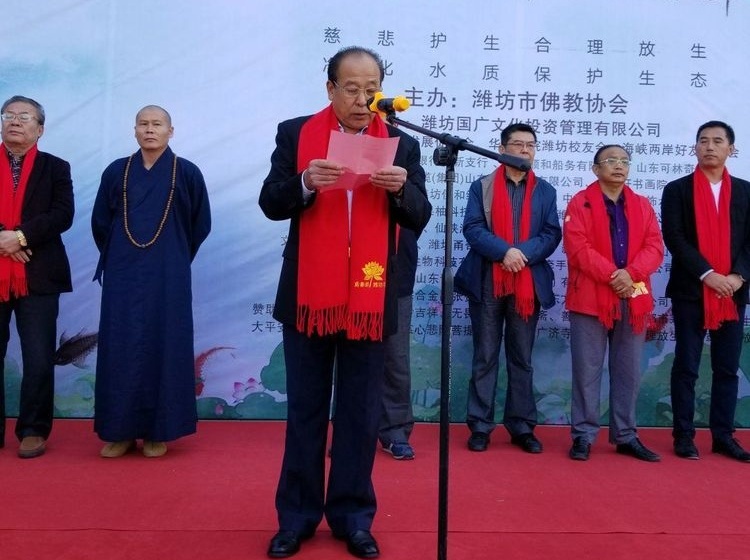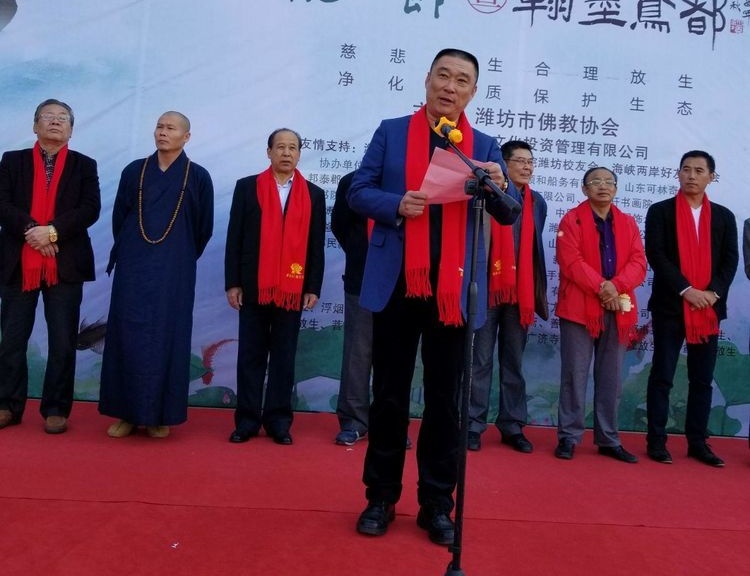 强调贯彻党的十九大精神、坚定文化自信、为建设潍坊文化名市作贡献!从保护生态环境出发搞好放生养生,为维护建设綠水青山积极贡献力量!