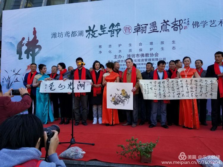 潍坊经济发展促进会副会长兼副秘书长、鸢都湖景区总经理 许 春 霞 创办的潍坊市首届放生节暨佛学艺术书画展在鸢都湖隆重举行市委、市政府老领导鞠法昌、刘洪清潍坊市佛教协会、潍坊市文联、潍坊经济发展促进会潍坊市慈善企业家、爱心艺术家、保护生态放生团队等社会各界代表共八百余人出席庆典仪式